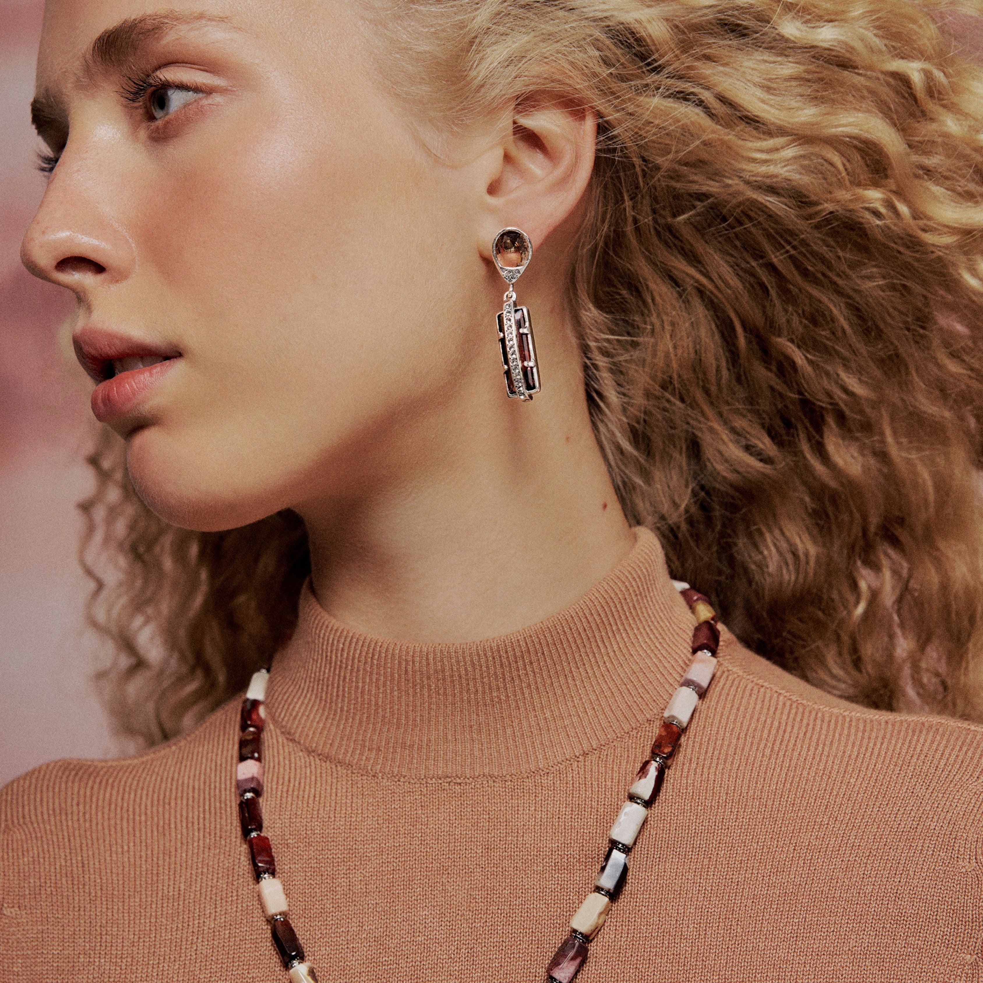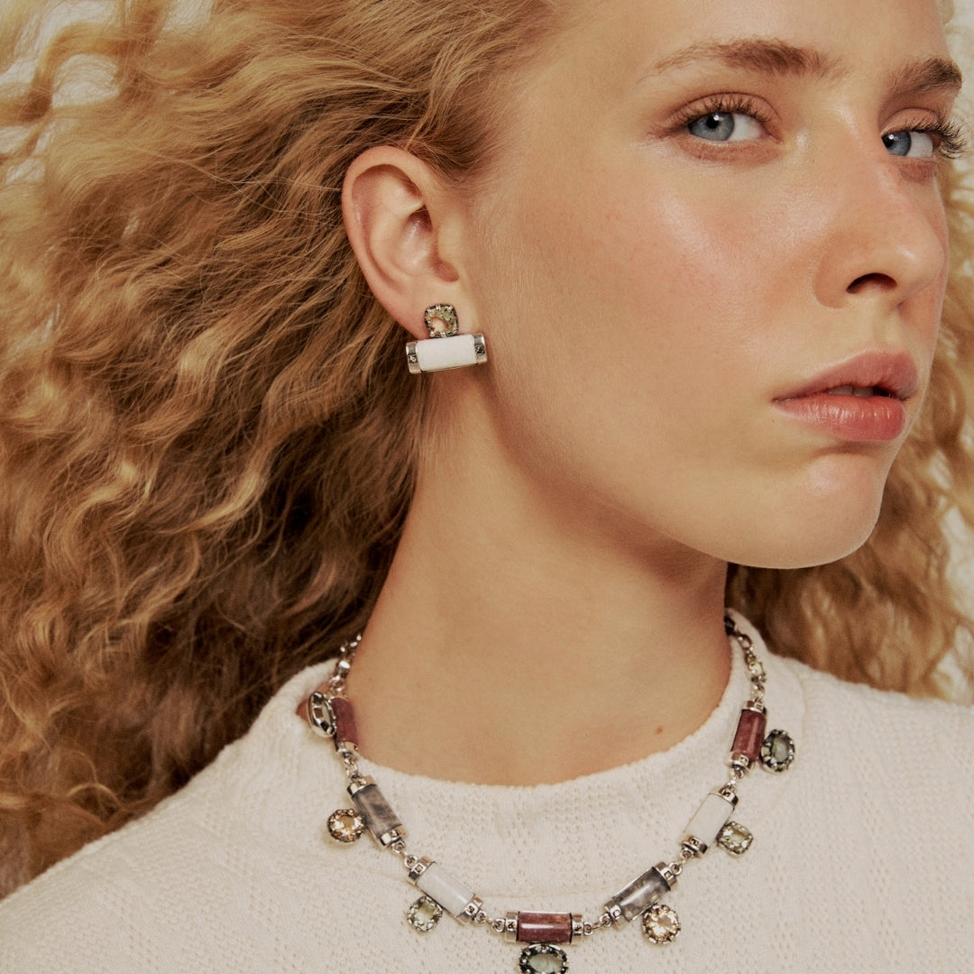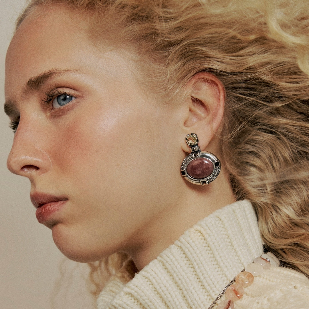 Brinco Prata Quartzo Goiaba - Guardião da Galope | Camila Klein