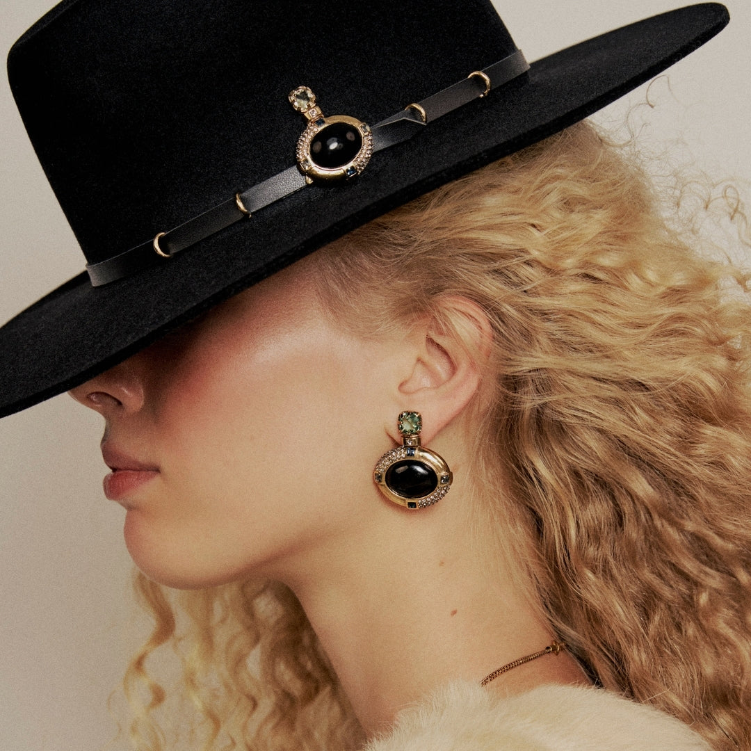 Brinco Ouro Cristais com Onix - Guardião da Galope | Camila Klein