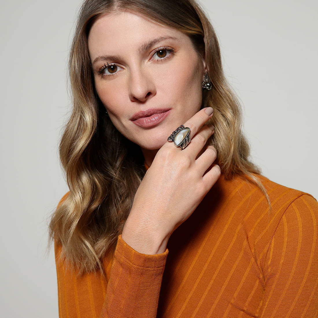 Anel Madrepérola Oval Brotar Prata Velho - CamilaKlein