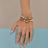 Em tons vibrantes de jade, ametista e angelita, combinados ao brilho suave dos cristais Marbled Ivory, a coleção captura a essência dos fins de tarde italianos, leves, coloridos e cheios de vida. Passeggiata é um convite a caminhar com beleza, liberdade e alma solar, sentindo o tempo passar devagar e permitindo que a beleza se revele em cada detalhe, assim como a vida acontece naturalmente à beira do mar.