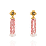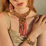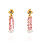 Materiais: Cristais, pedra natural Jade Rosa, e metal com banho em ouro velho.