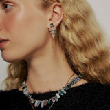 A coleção traduz esse espírito livre em peças marcantes, onde cores profundas e texturas naturais se encontram em composições intensas e sofisticadas. Pedras naturais como jaspe oceano, sodalita, rodocrosita, quartzo morango, quartzo negro, fluorita e serpentinita revelam uma paleta rica e cheia de personalidade, enquanto a resina marfim traz equilíbrio e suavidade às criações. Cristais luminosos completam as peças, adicionando brilho e movimento.
