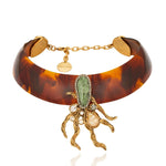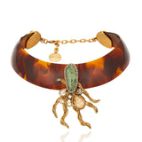 A intensidade do Mediterrâneo perto de você. Este choker une a textura da Resina Tartaruga à força do Jaspe Cobra, pedra de coragem e estabilidade. O brilho dos cristais e a suavidade da pérola emolduram o pescoço, traduzindo o estilo solar e a elegância vibrante da Costa Amalfitana