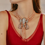 Materiais: Cristais, Quartzo Cinza, Jade Pêssego e metais com banho em prata velho.