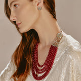 Materiais: Cristais, Cristal Yellow, Jade Fucsia e metais com banho em prata velho.
