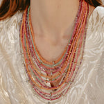 Materiais: Cristais, Jades: Laranja, Rosa Chiclete, Verde Floresta, Verde Menta, Fucsia, Ametista e metais com banho em ouro e prata velho.