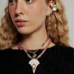 A coleção traduz esse espírito livre em peças marcantes, onde cores profundas e texturas naturais se encontram em composições intensas e sofisticadas. Pedras naturais como jaspe oceano, sodalita, rodocrosita, quartzo morango, quartzo negro, fluorita e serpentinita revelam uma paleta rica e cheia de personalidade, enquanto a resina marfim traz equilíbrio e suavidade às criações. Cristais luminosos completam as peças, adicionando brilho e movimento.