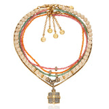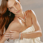 Em tons vibrantes de jade, ametista e angelita, combinados ao brilho suave dos cristais Marbled Ivory, a coleção captura a essência dos fins de tarde italianos, leves, coloridos e cheios de vida. Passeggiata é um convite a caminhar com beleza, liberdade e alma solar, sentindo o tempo passar devagar e permitindo que a beleza se revele em cada detalhe, assim como a vida acontece naturalmente à beira do mar.