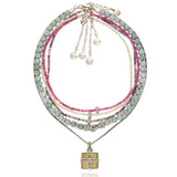 Materiais: Cristais, Cristal Yellow, Jades: Angelita, Fucsia, Verde Menta, Ametista, Caramelo e metais com banho em prata velho.