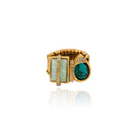 Materiais: Cristais, pedra natural amazonita e metais com banho em ouro velho.