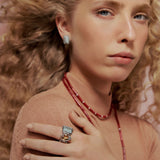 As peças traduzem exuberância e movimento, como se carregassem o vento das estepes e a liberdade dos cavalos sagrados. Pedras naturais de cores intensas se unem a cristais luminosos em composições marcantes, que misturam força e delicadeza. Cada criação é pensada como um amuleto contemporâneo: vibrante, sofisticado e cheio de presença.