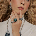 Meio Anel Quartzo Verde Prata - Sela Lunar | Camila Klein