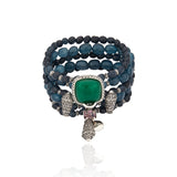 Materiais: Cristais, pedra natural quartzo verde, jade safira e metais com banho em prata velho.