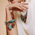 Materiais: Cristais Quartzo Leitoso, Howlita Turquesa, Porcelana e metais com banho em prata velho.