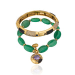 Materiais: Cristais, pedra natural ônix, quartzo verde e metais com banho em ouro velho.