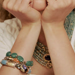 As peças traduzem essa energia pulsante em composições exuberantes, onde pedras naturais coloridas e cristais se unem em formas marcantes e cheias de presença. Cada criação carrega a ideia de proteção e potência, como um amuleto contemporâneo que acompanha a mulher em sua própria jornada.